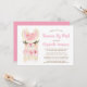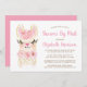 Baby shower simple et sucré, neutre pour le genre, par invitation postale, avec une aquarelle illustrant un lama joli et girly avec des fleurs roses et de la parties scintillant d'or. "Shower By Mail" et le nom de la future mère sont dans un script rose amusant et vous pouvez personnaliser les détails de la douche dans la typographie or.