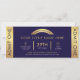 Créez des billets élégants pour votre entreprise ou événement privé en utilisant ce modèle de billet Admit One couleur bleu marine et or. Caractérisé par des effets de faux foil doré, une mise en page professionnelle avec un espace pour le nom de votre événement, la date, l'adresse, le prix du billet ainsi que votre logo et les conditions générales au verso. Ce billet de société à effet métallique luxueux peut être utilisé comme un laissez-passer pour votre dîner de gala, soirée de charité, collecte de fonds, concert, billet-cadeau d'anniversaire, mariage ou tout autre type d'événement.