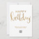 Design moderne simple épuré minimaliste à deux imprimés latéraux Business Happy Birthday Flat Greeting Card avec simulation de fausse parties scintillant en or lettrage main texte sur un arrière - plan blanc. Veuillez noter que l'or dans ce design est une impression de couleur beige brun jaune plat et n'est pas une véritable feuille métallique or ni une parties scintillant. Changez l'image "votre logo ici" avec votre logo ou retirez-la si vous voulez l'utiliser sans logo. N’oubliez pas de customiser le texte avant et arrière. Parfait pour vos employés, partenaires d'affaires et clients.