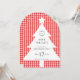 Élégant logo Société Noël Arbre fête Enregistrer la date. Disponible numériquement et imprimé. pour les employés et les clients, faites-leur savoir la date de votre fête de l'entreprise bien à l'avance. Avec un arrière - plan en vichy rouge, et texte dans une forme d'arbre de Noël. Personnalisez facilement les mots et remplacez l'exemple de logo par le vôtre.