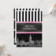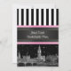 London Skyline BW Black & White Stripe Invitation Pink Ribbon Collection - Bachelorette Party Invitation personnalisable Invitations et accessoires avec une vue iconique de l'horizon londonien avec une photo en noir & blanc gravée de Big Ben contre un ciel plein d'étoiles noires. Elles sont également ornées d'un arrière - plan motif rayé noir et blanc et d'un ruban rose et noir. Ce produit fait partie d'une suite de conceptions assorties qui sont facilement personnalisables pour de nombreuses occasions et événements. Si vous avez besoin de cartes RSVP assorties, notes de remerciements, timbres, magnets ou autres accessoires, veuillez consulter nos autres annonces. Si vous ne voyez pas un produit correspondant qui vous intéresse, ou si vous souhaitez voir ce design dans des couleurs différentes, avec des éléments d'autres designs, ou avec différentes photos NYCisMyMuse que vous voyez dans notre magasin, veuillez nous contacter et nous serons heureux de customiser un design pour vous! Veuillez noter qu'il s'agit d'un design graphique et qu'il ne contient aucun tissu, métal, gemme ou gaufrage. 2013 ©NYCisMyMuse Tous droits réservés