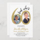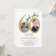 Trendy bold black and gold typography Look Who's sixty chic white 60th birthday party invitation with 2 photos and modern script. Easy to personalize with your details and pictures.