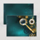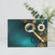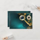 Une loupe antique avec poignée dorée et lentille convexe sur arrière - plan vert avec des engrenages en or et une horloge antique. Style Steampunk.