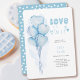Aquarelle baby shower invitation avec ballons coeur d'amour bleu et écrit avec Amour est dans l'Air, dans adorable écriture de la typographie bleue. Un design sucré pour toute période de l'année et parfait pour un baby shower à thème Valentines. Si vous désirez des produits correspondants, s'il vous plaît envoyez-moi un message.