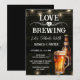 Love is Brewing Facile à personnaliser les invitations de fête de couple ou de fiançailles. Tout le texte est réglable et facile à modifier selon vos besoins. Éléments de fond rustique avec guirlandes lumineuses. Tourbillons et fioritures de tableau noir amusants. Tasse de bière à l'aquarelle. Invitations pour lui. Conception d'anniversaire BBQ de bar ou de jardin. Tout âge, il suffit de changer le texte.