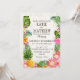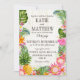Le thème rustique du luau de la plage avec des fleurs tropicales avec plumeria, hibiscus et carte faire-part de mariage d'ananas.