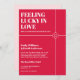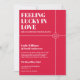 Moderne et minimaliste thème mariage "Lucky in Love" avec quatre feuilles de trèfle en forme de coeur reliant les coeurs de quatre côtés dans des couleurs rouge pourpre et rose doux.