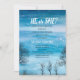 Neige amoureuse, pays des merveilles hivernales, bleu, blanc, flocons de neige, arbres l'hiver sexe révéler l'invitation. Elégante, belle, invitation à la douche bébé. Peinture à l'aquarelle de la forêt par moi-même. Personnalisez-le avec vos détails.