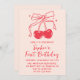 Invitation Lumber & Red Bow Cherry Fruit 1st Birthday Party