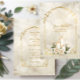Une très belle et délicate cérémonie aux chandelles faire-part de mariage. Jaune pâle aux roses blanches, aux bougies blanches et au design rose, le tout entouré d'un cadre doré voûté. J'ai choisi le papier en forme d'arc en Champagne Shimmer aussi pour améliorer la beauté de cette invitation.