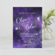 Romantic Night Sky Starlight violet avec RSVP Détails Faire-part de mariage conçu avec un ciel de nuit violet rempli d'étoiles brillantes. Le texte comprend : les prénoms de la mariée et de la mariée en gros texte, la date, l'heure, l'emplacement et la note de réception du Mariage. Le texte inverse comprend : RSVP et vos détails de réponse. Pour personnaliser, insérez simplement votre texte dans notre modèle facile, en remplaçant l'exemple. N'oubliez pas de consulter la collection de Mariages violets Romantic Night Sky pour les articles de papeterie, les enseignes et les accessoires correspondants.