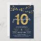 Invitation élégante pour le 10ème anniversaire avec des guirlandes lumineuses et "10" en or faux avec "ans ensemble" en blanc sur fond bleu foncé. La carte comprend un verso avec un motif assorti. Découvrez les articles assortis comme les autocollants et les tampons ici https://www.zazzle.com/collections/strings_of_lights_faux_gold_celebration_collection-119311942951401241?rf=238364477188679314