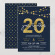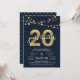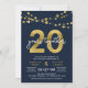 Invitation élégante pour le 20e anniversaire avec des guirlandes lumineuses et "20" en doré imitation avec "ans ensemble" en blanc sur fond bleu foncé. La carte comprend un verso assorti. Découvrez les articles assortis comme les autocollants et les tampons ici https://www.zazzle.com/collections/strings_of_lights_faux_gold_celebration_collection-119311942951401241?rf=238364477188679314