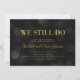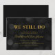Invitation élégante pour anniversaire de mariage avec les mots "We still do" en faux papier doré sur fond de lumières bokeh foncées sur le recto et un fond de couleur foncée sur le verso. Cette invitation est parfaite pour célébrer un anniversaire de mariage de n'importe quelle année en ajoutant simplement le nombre d'années célébrées dans le texte de remplacement.
