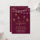 Célébrez votre jour spécial avec cette invitation de fête d'anniversaire de mariage moderne et élégante. Ce design sophistiqué présente une typographie dorée élégante, de belles guirlandes lumineuses et des luminaires géométriques sur un fond rouge bourgogne. Invitation parfaite pour une célébration d'anniversaire de mariage moderne or et noir pour n'importe quelle année.