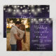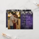 Cette invitation de mariage avec lumières de chaîne en bois de grange rustique violet peut être personnalisée avec vos informations en typographie moderne et une photo spéciale. Conçue par Thisisnotme©