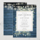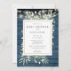 Avec de jolies guirlandes lumineuses et des feuilles délicates de style aquarelle forestière sur un fond de planches de bois rustique bleu. Cette invitation élégante pour fête de bébé ou sprinkle peut être personnalisée avec vos détails de célébration spéciaux dans une typographie moderne. Conçue par Thisisnotme©