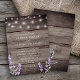 Invitation de mariage avec impression de bois rustique, lavande et lumières de chaîne blanches avec code QR au dos pour RSVP.