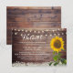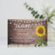Cartes de détails de mariage de grange de lumières de corde de tournesol rustique.