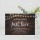 Beaucoup de rien de fantaisie, juste de l'amour, faire-part de mariage intime / carte d'invitation à la fête, dans un design rustique moderne, lumières de chaîne de ferme, thème papier bois marron. C'est parfait pour votre réception de mariage et fête de célébration après le mariage. Ajoutez vos détails dans la même police / lettrage.