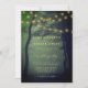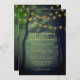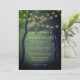 Bois rustique forêt vert foncé et doré suspendu fil à corde scintillante lumières modernes faux or typographie script invitation mariage.