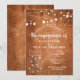 Une invitation de fête de fiançailles rustique à la campagne avec des guirlandes lumineuses et un pot de maçon artistique rempli de fleurs délicates éparpillées sur un fond de bois vieilli. Conçu par Thisisnotme©