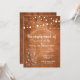 Une invitation de fête de fiançailles rustique campagne avec des lumières de guirlande et un pot Mason artistique rempli de fleurs délicates éparpillées sur un fond de bois vieilli. Conçu par Thisisnotme