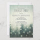 Invitation de la répétition de dîner rustique avec des épinettes décorées de lumières de fées.