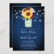 Ces invitations de mariage présentent un dessin floral à l'aquarelle avec des tournesols, des fleurs de couleur blush burgundy et du feuillage dans un pot Mason avec des guirlandes lumineuses. Le fond est un motif de grain de bois bleu marine. Personnalisez le pot avec vos initiales et le texte de l'invitation avec votre propre texte. Ces invitations de mariage font partie d'une collection qui comprend une gamme de papeterie de mariage assortie et d'autres articles de mariage. Veuillez consulter la page de la collection ou visiter notre magasin pour voir la gamme complète.