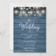 Invitation Lumières de Noël en bois rustique bleu mariage