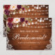Lumières en bois de mariage rustique Carte de demoiselle d'honneur florale burgundy marsala aquarelle en dentelle