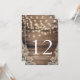 À PROPOS DE CE DESIGN : Lumières en bois rustique et guirlande | Numéros de table en dentelle de Cali Graphics.