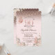 Une invitation moderne, chic et glamour avec une élégante tiare dorée, des lampes à cordes, des papillons de parties scintillant et des fleurs roses.