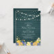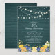 Célébrez un jour spécial avec cette invitation d'anniversaire de mariage rustique en bois et fleurs. Ce design présente des lumières guinguette élégantes et un bouquet de fleurs sur un fond en bois de texture vert sarcelle. Vous pouvez personnaliser le texte et les polices comme vous le souhaitez. Plus de cartons d'invitation et d'articles de fête assortis sont disponibles dans ma boutique BaraBomDesign.