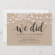 Cette carte d'invitation kraft sur le thème de la ferme rustique (Nous l'avons fait) est parfaite pour votre célébration de mariage en fuite / annonce de fête. Ajoutez vos détails dans une police / lettrage noir assorti.