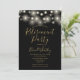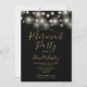 Avec des guirlandes lumineuses, cette invitation de fête de retraite noire et dorée élégante peut être personnalisée avec les informations de votre événement spécial. Conçue par Thisisnotme©