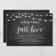 Rien de Fantaisiste, Juste l'Amour, Faire-Part / Carte d'Invitation de Mariage Intime, dans un design Rustique Moderne, Lumières Guirlandes de Ferme, thème Tableau Noir. C'est parfait pour votre réception de mariage et fête de célébration après le mariage. Ajoutez vos détails dans la même police / lettrage.