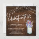 Comportant une police moderne manuscrite pour rendre un graphique représentant les mots "Célébrez avec nous", cette carte audacieuse est idéale pour célébrer votre mariage récent lorsque vous avez choisi un style rustique et décontracté. Le fond est recouvert de bois brun foncé recouvert de guirlandes de lumières blanches scintillantes. Un bouquet désordonné de fleurs sauvages à l'aquarelle dans un pot Mason accentue la surface sombre. Votre propre texte est facilement ajouté pour personnaliser ce modèle autant que vous le souhaitez. Utilisez les champs fournis pour entrer simplement vos informations personnelles, et cliquez pour personnaliser davantage si vous souhaitez repositionner l'une des couches déverrouillées. N'hésitez pas à me contacter pour des demandes spéciales ou pour une aide à la personnalisation.