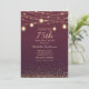 Moderne, élégante et chic invitation de 75 ans pour femmes avec des lumières scintillantes dorées et des guirlandes lumineuses. Personnalisez avec votre propre texte.