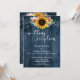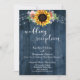 Invitation Lumières tournesol en bois bleu pour réception de