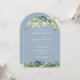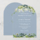 Cet élégant eucalyptus vert à cordes botaniques lumières bleu poussiéreux faire-part de mariage peut être personnalisé avec vos informations dans la typographie chic avec votre monogramme au verso. Conçu par Thisisnotme©