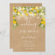 Avec de jolies lampes à cordes, des citrons, des fleurs et de la verdure sur un arrière - plan kraft rustique, cette élégante invitation de mariage peut être personnalisée avec vos informations spéciales événement. Conçu par Thisisnotme©
