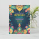 L'avant de l'invitation est orné d'un riche arrière - plan foncé qui contraste magnifiquement avec les jaunes vibrants et le turquoise, créant une atmosphère frappante et festive. En bas, une seule lampe Diya, ornée de détails, brille de façon éclatante, servant de point central au design. Les jaunes vibrants et turquoise sont complétés par des éléments roses délicats, ajoutant une touche d'élégance et de gaieté. Des motifs décoratifs hindous tissent le décor, rehaussant le charme traditionnel et ajoutant de la profondeur. Les détails de l'événement sont affichés dans un script sophistiqué qui s'harmonise avec les couleurs riches. Le dos de la carte continue le thème sombre, offrant un espace pour le texte personnalisable et les souhaits de Diwali, encadrés par les mêmes teintes vibrantes et les motifs complexes. Ce design offre un mélange parfait de tradition et de fête vibrante