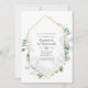 Invitation de déjeuner des demoiselles d'honneur avec herbier de forêt sauvage eucalyptus dans des nuances de vert avec cadre géométrique doré et revers Sauge Argentée.