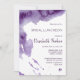 Douche nuptiale lavée moderne / déjeuner / brunch invitation avec taches et éclaboussures dans les tons clairs et violet prune, violet et indigo. Le petit logo décoratif représentant deux feuilles stylisés dans le coin en bas à droite se trouve dans toute la suite mariage (invitation, rsvp, cartes de table, enregistrer la date, carte menu).