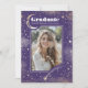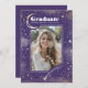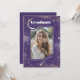 L’invitation de la fête de remise de diplômes rayonne d’énergie, de profondeur et de pensée attentive, où chaque élément graphique est parfaitement relié, plaçant la photo du diplômé au coeur. La toile de fond évoque une nuit étoilée, avec la lune projetant une lueur dorée près du sommet, illuminant parfaitement le mot "Graduate", tandis qu'une étoile filante parcourt gracieusement le coin inférieur, ajoutant une touche de magie à la scène. Même avec ses illustrations célestes complexes, la photo du diplômé reste le trait distinctif, en commandant l'attention comme l'accent central contre la couverture violette riche. En revanche, la simplicité règne avec des graphismes minimes, ce qui permet aux détails essentiels de la fête de briller. Cette invitation s’adresse à tous ceux qui ont l’impression de flotter parmi les étoiles après avoir réalisé leurs rêves. C'est parfait pour le rêveur, le stargazer, le futur scientifique de la NASA, ou l'âme spirituelle qui trouve de la magie dans le cosmos, que ce soit par l'astrologie ou le tarot.