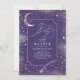 Invitation de charme et mystique baby shower violet avec croissant lune, étoile tournante et galaxies.