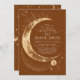 Cette invitation de fête d'anniversaire en terre cuite jette un charme d'émerveillement et de romantisme, avec sa lune scintillante de croissant métallique, ses étoiles brillantes, ses constellations lointaines, ses galaxies mystérieuses et ses planètes du monde entier.