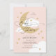 Invitation Lune et étoiles Baby shower de script rose élégant