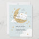 Invitation Lune et étoiles Bleu Élégant Baby shower Script